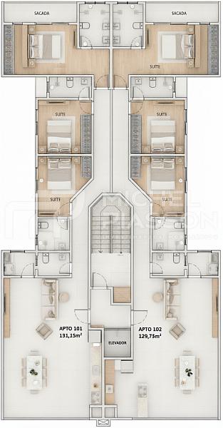 Com 129m² de área privativa + vaga dupla de garagem.