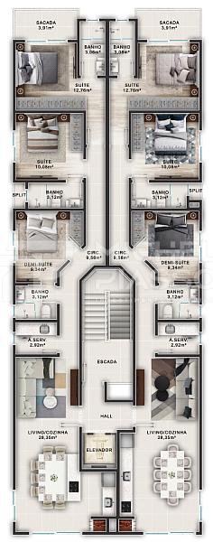 ✅ 06 aptos tipo com 03 suítes, sendo uma delas demi-suíte.