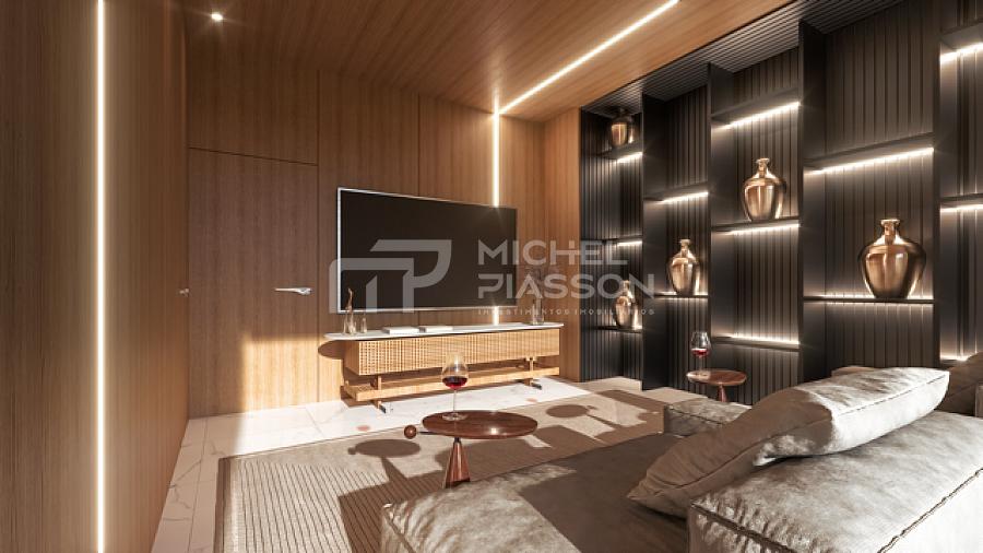 • Apartamentos com 02 e 03 suítes, lavabo, living com sala e cozinha integrados, sacada com churrasqueira a carvão, com metragens entre 80m² à 99m² de área privativa + vaga dupla de garagem, pisos em porcelanato marmorizados nas áreas sociais e piso vinílico nas áreas privativas, teto com rebaixo em gesso, medidores individuais, tubulação para água quente e para ar-condicionado split, elevador moderno.