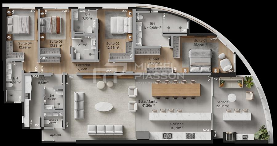 • Apartamentos com 2, 3 ou 4 suítes;
