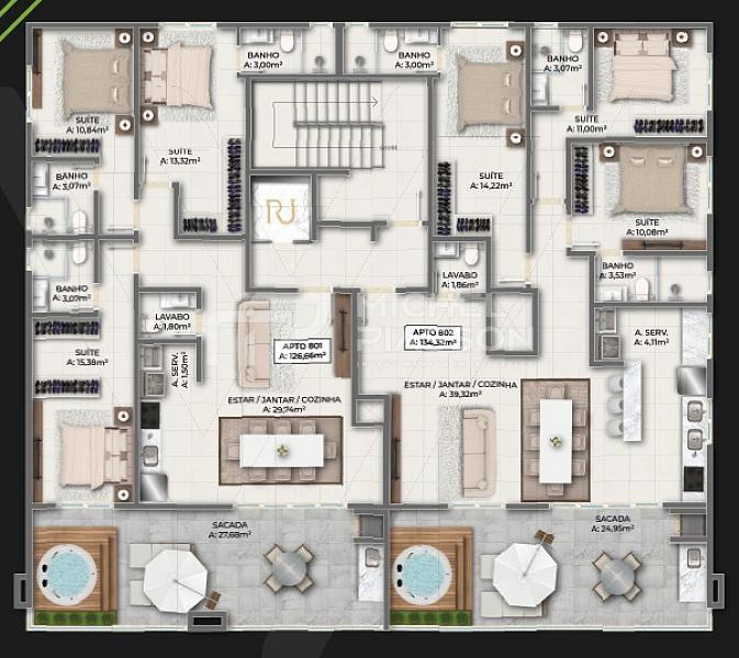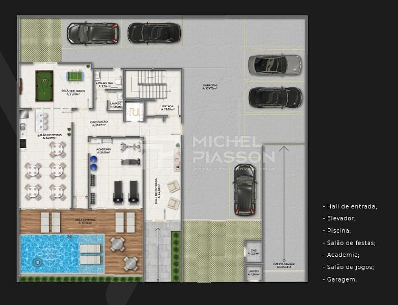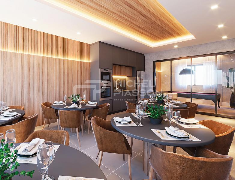 - Área de lazer com piscina, salão de festas com espaço gourmet, academia, sala de jogos, todos os ambientes entregues mobiliados e equipados.