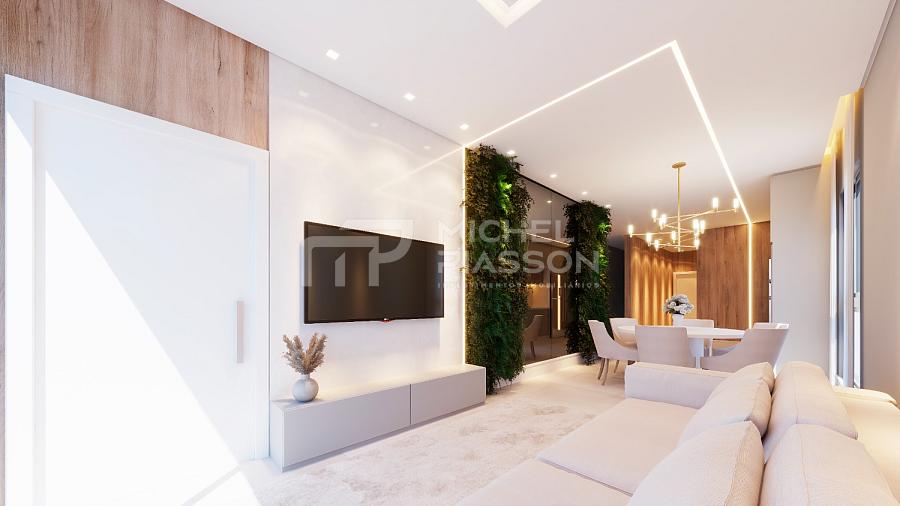 - Apartamento com 03 suítes, living com churrasqueira integrados, unidade com 118m² de área privativa, vaga dupla de garagem (comporta 02 veículos um atrás do outro), pisos em porcelanato, dormitórios com vinilico, teto com rebaixo em gesso, medidores individuais, tubulação para água quente e para ar-condicionado split, elevador moderno e área de lazer.