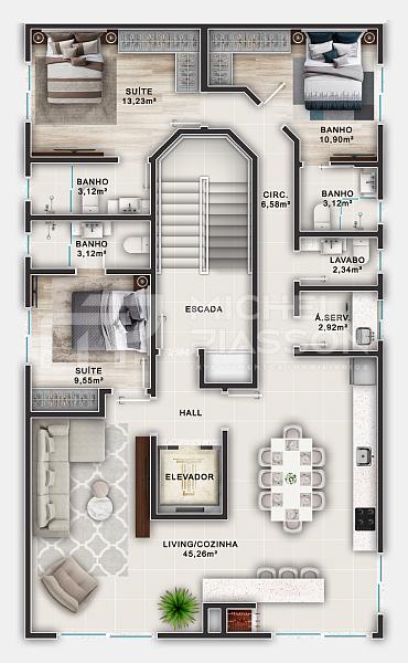 3 dormitórios (3 suítes)