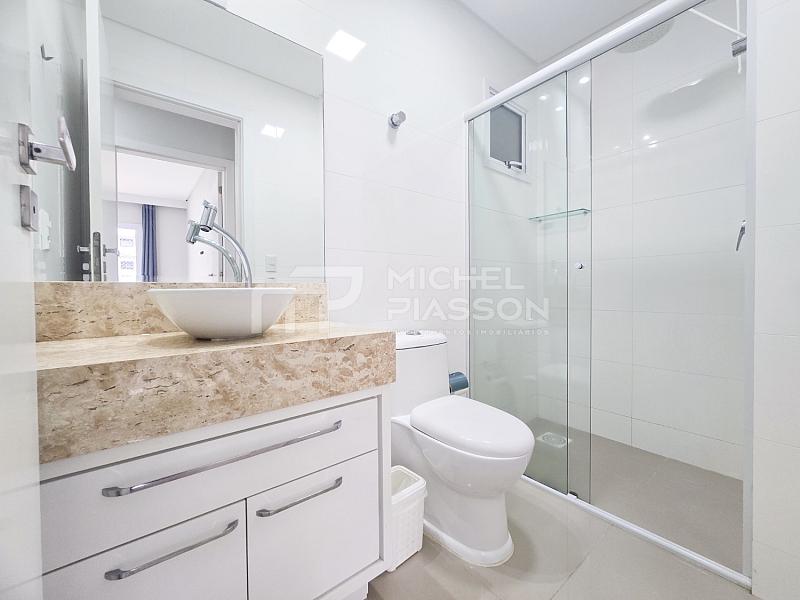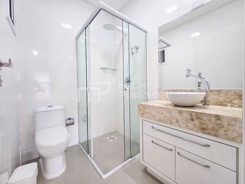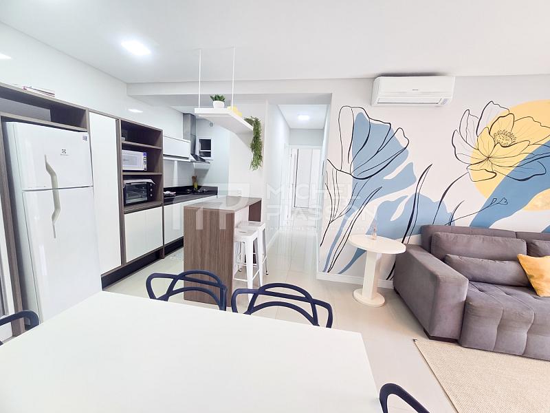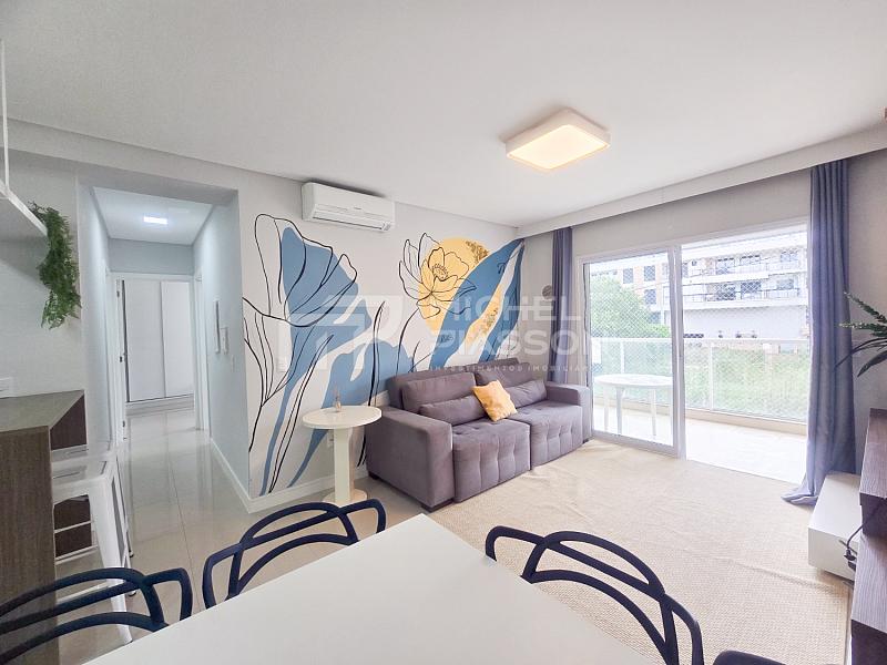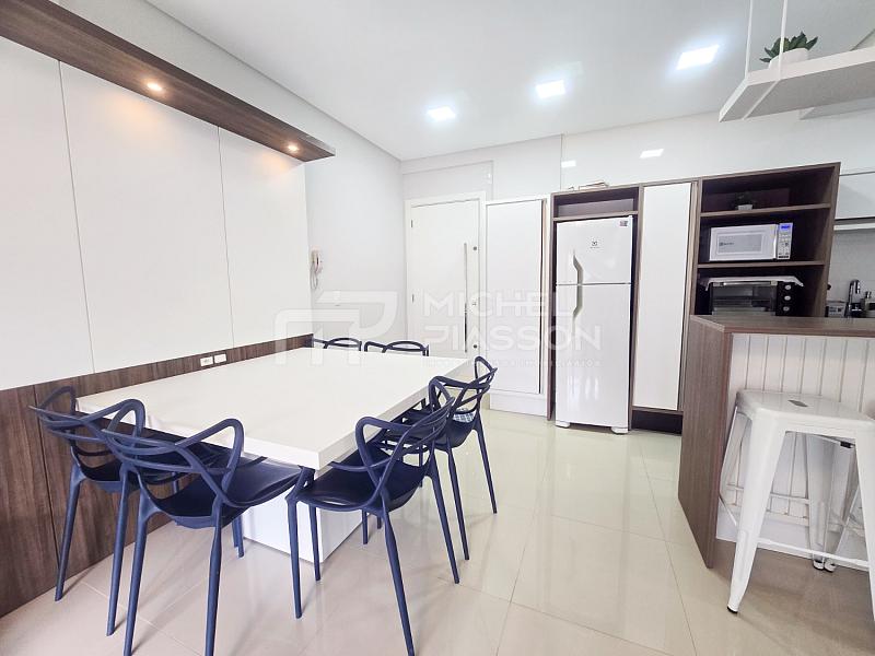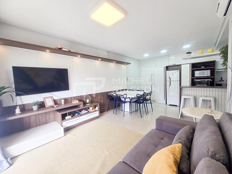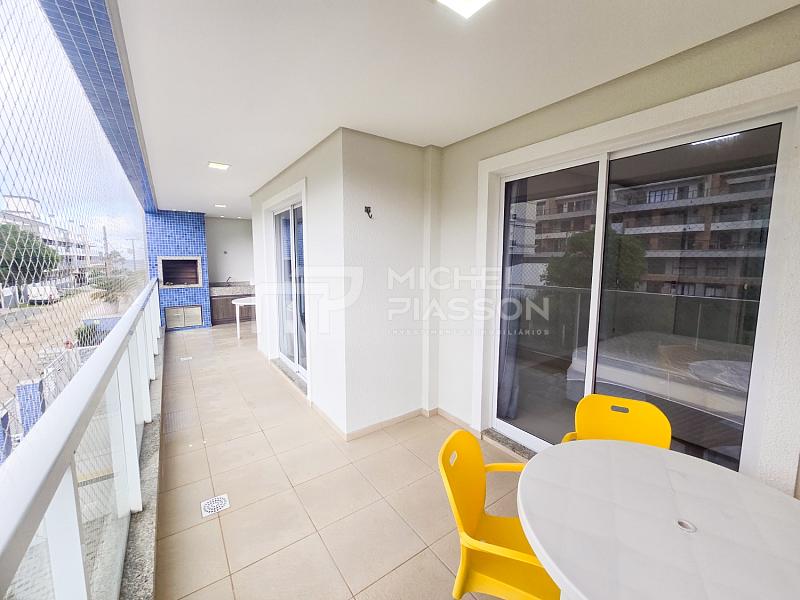 - Apartamento com 02 dormitórios sendo 01 suíte, banheiro social, living integrado, sacada com churrasqueira a carvão, unidade com aproximadamente 84m² de área privativa + vaga dupla de garagem, pisos em porcelanato, medidores individuais, tubulação para água quente e para ar-condicionado split, elevador, vista para o mar.