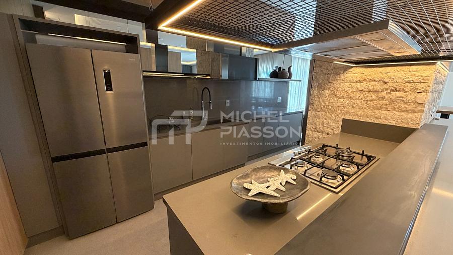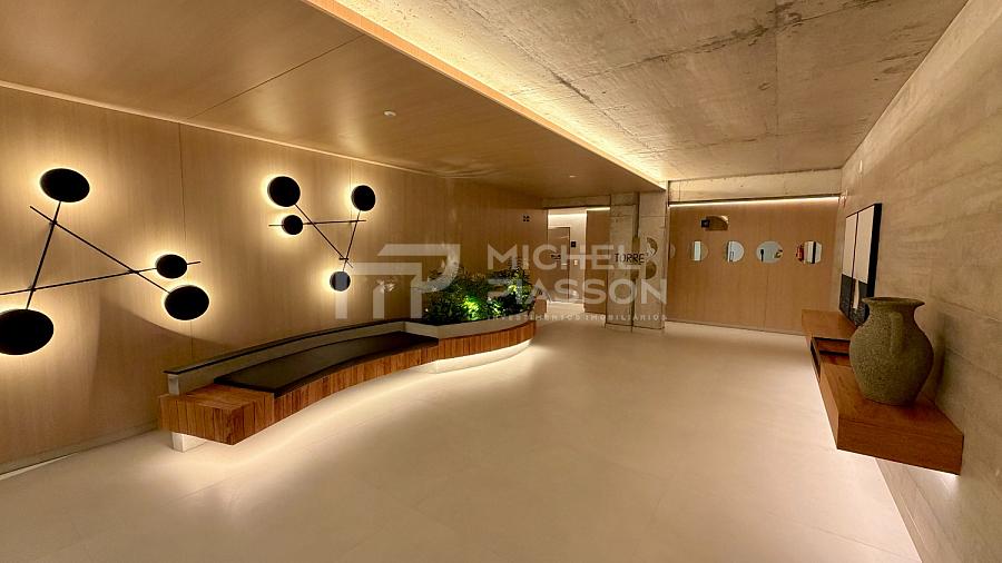 - Possuindo 03 quartos, sendo 01 suíte e 02 demi-suíte, lavabo, amplo living com sala e cozinha integrados, ampla sacada com churrasqueira a carvão, com 176m² de área privativa + vaga dupla de garagem, pisos em porcelanato no living e piso vinílico nas áreas íntimas, teto com rebaixo em gesso, medidores individuais, tubulação para água quente e para ar-condicionado split, elevador moderno.