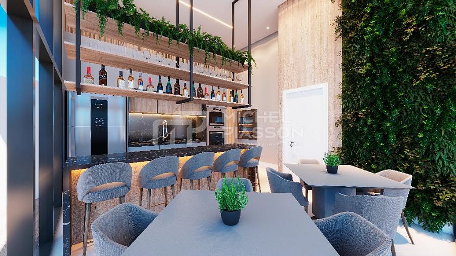 • Área de lazer com piscina e salão de festas com espaço gourmet. Ambientes entregues mobiliados e equipados.
