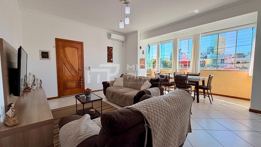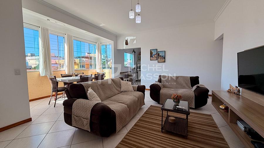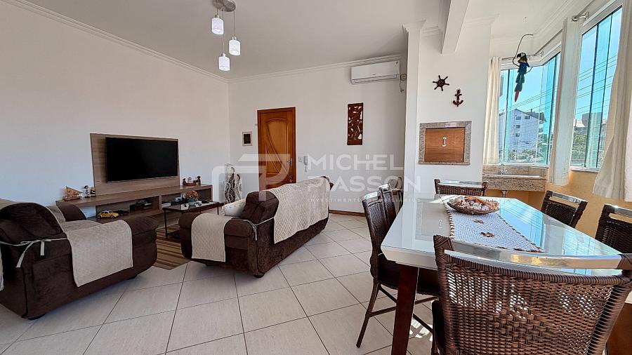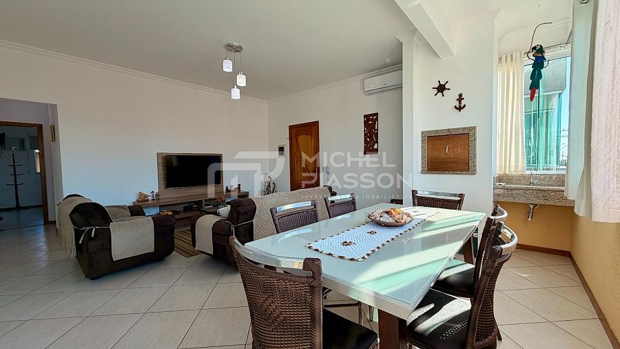 ⚜️ Apartamento mobiliado, possuindo 03 dormitórios (sendo 01 suíte), banheiro social, cozinha / área de serviço, living para 02 ambientes (sala de estar e jantar), sacada integrada com churrasqueira e fechamento em vidros temperados, com aproximadamente 110m² de área privativa + 01 vaga de garagem coberta e privativa + box de praia.