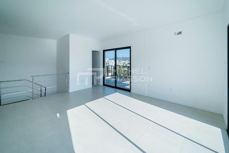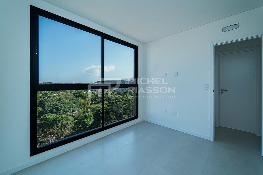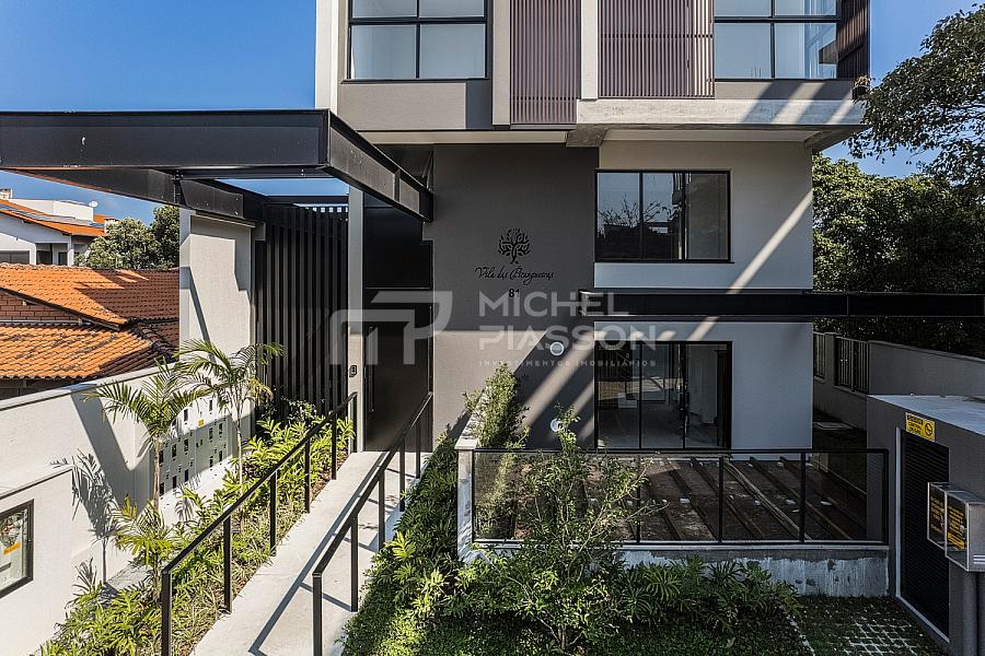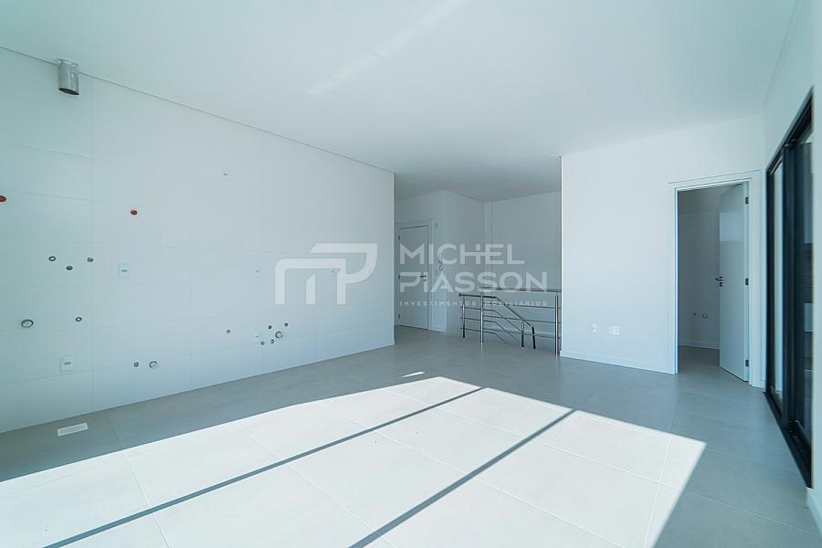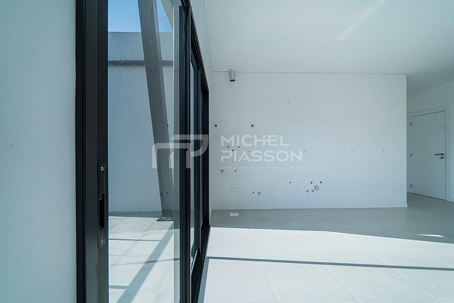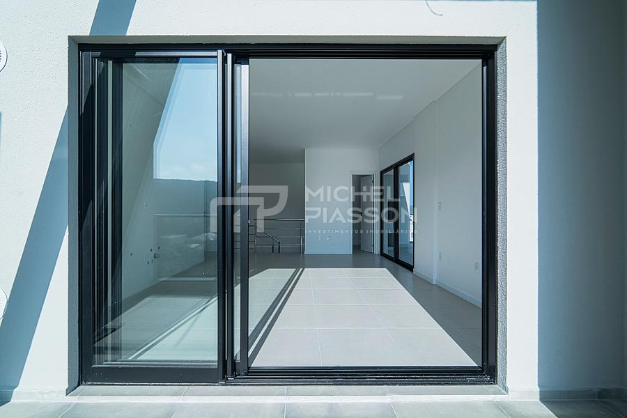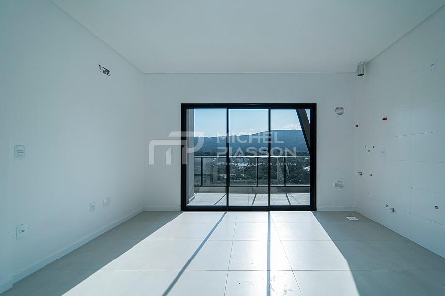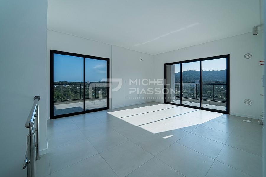 Metragen aproximada de 153 m² de área privativa com 03 suítes e living no andar inferior, no andar superior sala e cozinha em ambientes integrados, sacada com churrasqueira, lavabo e uma vista espetacular para área de preservação ambiental permanente.