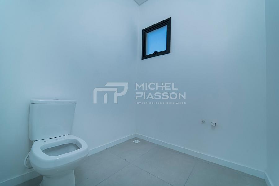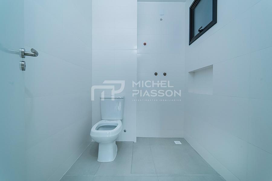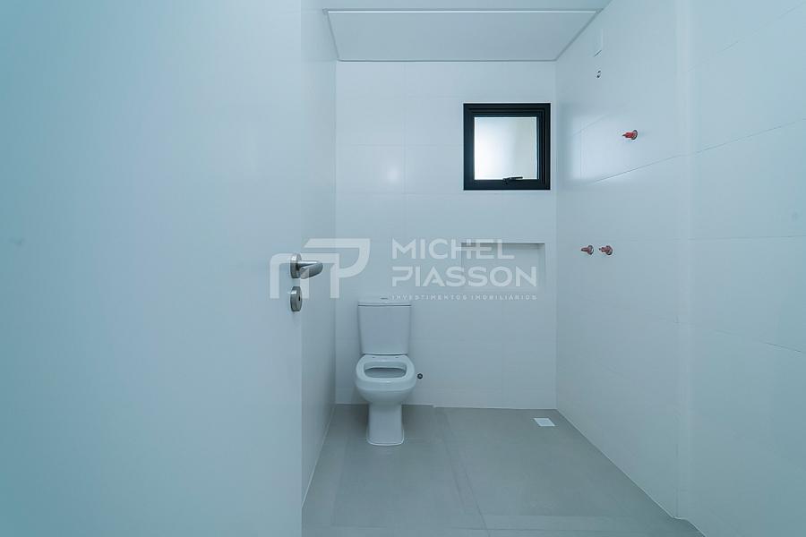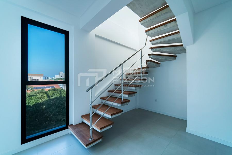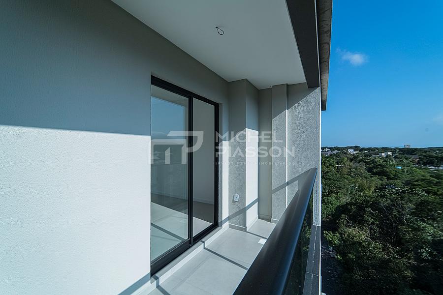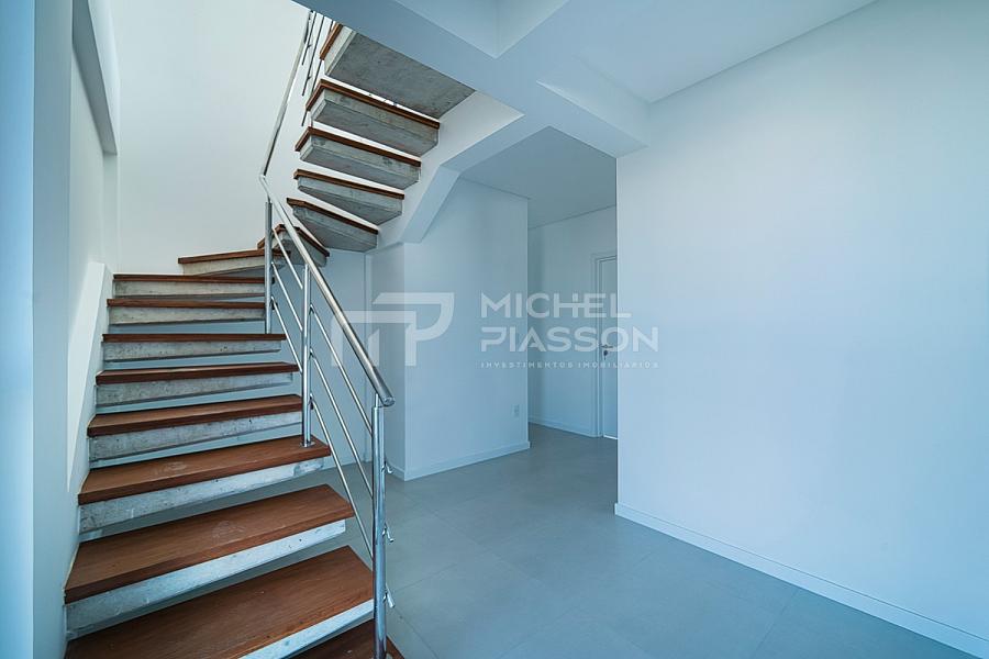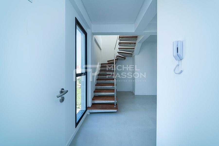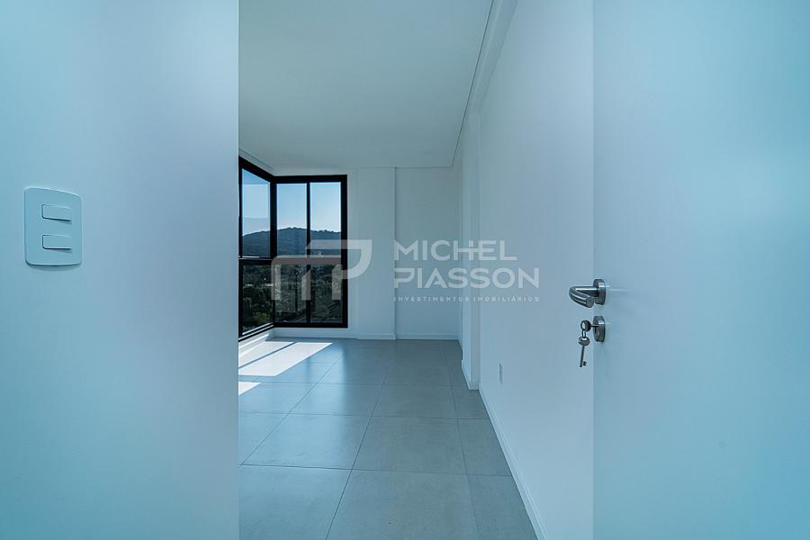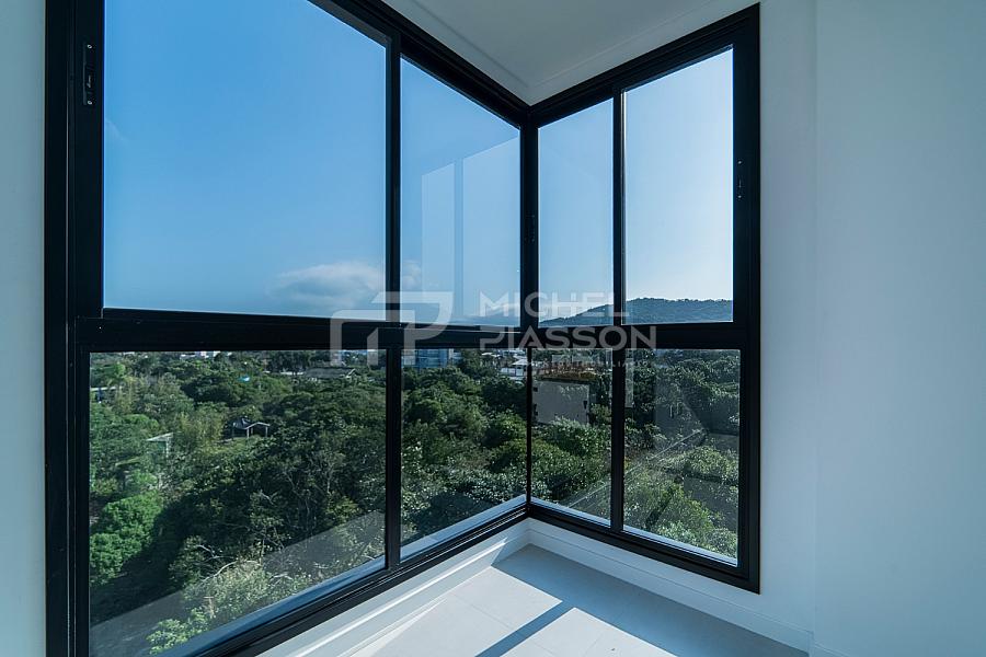Metragen aproximada de 153 m² de área privativa com 03 suítes e living no andar inferior, no andar superior sala e cozinha em ambientes integrados, sacada com churrasqueira, lavabo e uma vista espetacular para área de preservação ambiental permanente.