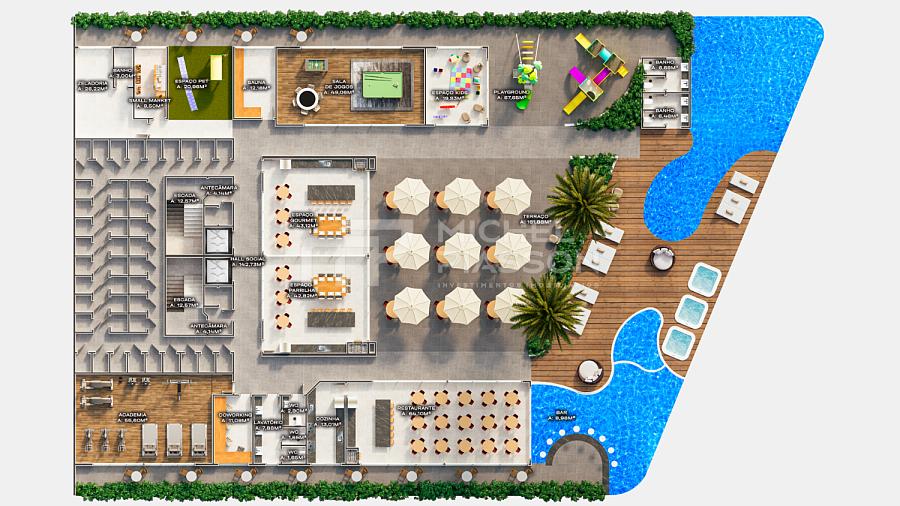 • Área de lazer com piscina adulto com borda infinita aquecimento, piscina infantil, brinquedoteca, Espaço Gourmet, playground, Pub, Salão de jogos, sauna, salão de festas, spa tudo para seu conforto e lazer.