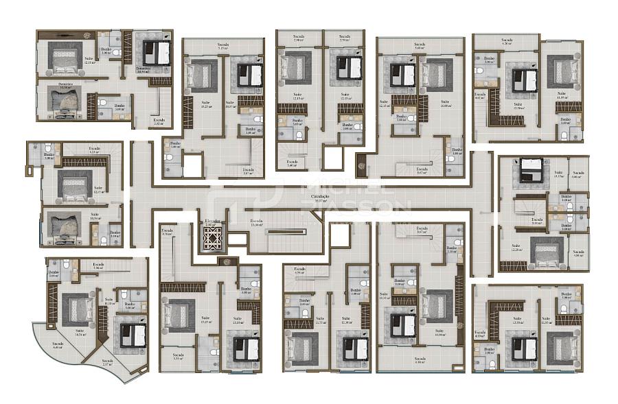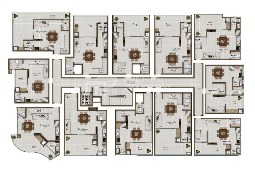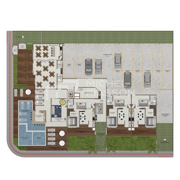 - Coberturas duplex com 02 suítes + 01 vaga de garagem, medindo de 81,90m² à 118,60m² de área privativa. Unidades com ambientes integrados, acabamento c/ porcelanato, teto com rebaixo em gesso, churrasqueira a carvão, portas e rodapés laqueados, infraestrutura para aquecimento de água á gás, medidores individuais, pontos para ar-condicionado split, terraço descoberto com infraestrutura para jacuzzi e/ou spa.