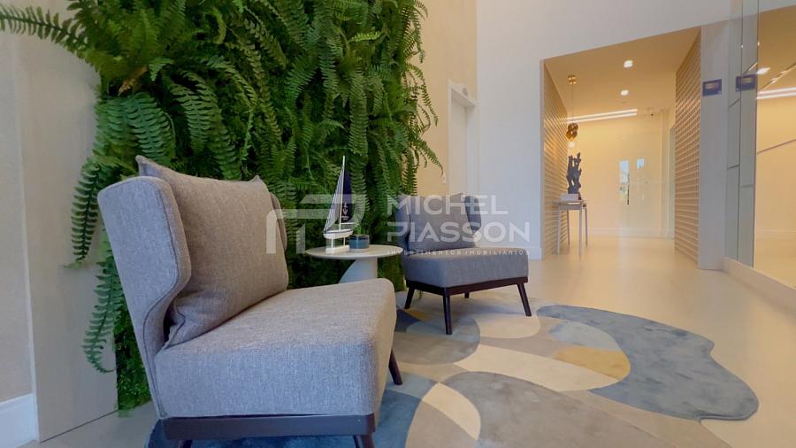 - Infraestrutura com hall de entrada decorado, box de praia individual, fachada revestidas em pastilhas, apartamentos com pisos em porcelanato, teto com rebaixo em gesso, medidores individuais, tubulação para água quente, infraestrutura para ar-condicionado split, elevador moderno.