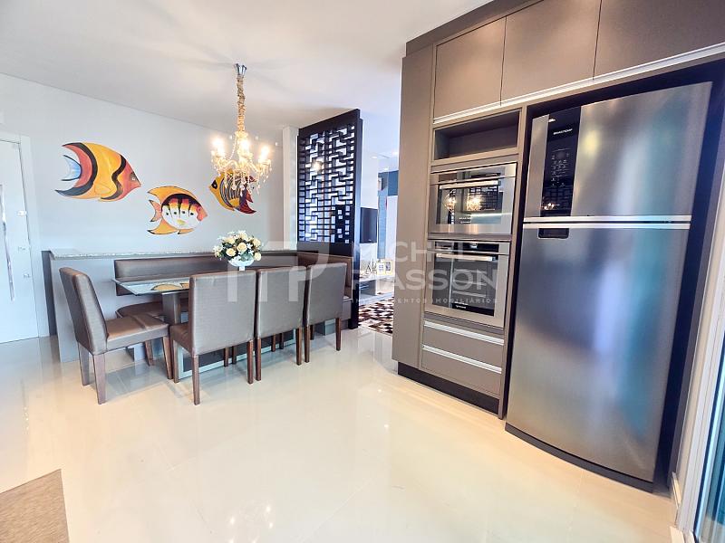 • Cobertura duplex com 03 suítes, mobiliada e decorada, lavabo, amplo living com sala e cozinha integrados, churrasqueira, terraço com vista panorâmica do mar e spa privativo, unidade com aprox. 162m² de área privativa + 02 vagas de garagem, pisos em porcelanato no living e piso vinílico na área íntima, teto com rebaixo em gesso, medidores individuais, tubulação para água quente e para ar-condicionado split, elevador moderno.