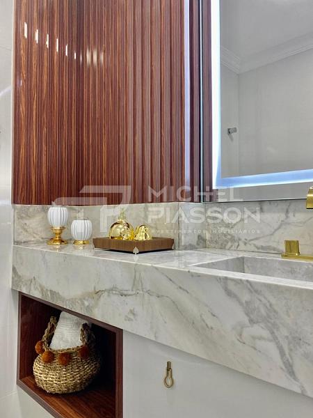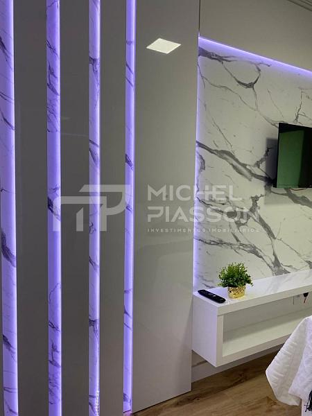 Empreendimento com excelente padrão de acabamento, elevador moderno, hall de entrada decorado, acabamento externo em grafiato e pastilhas, acabamento em gesso, pisos em porcelanato, portão e porteiro eletrônico, infraestrutura para ar condicionado split, tubulação para água quente, medidores Individuais, pontos para piscina nas coberturas.