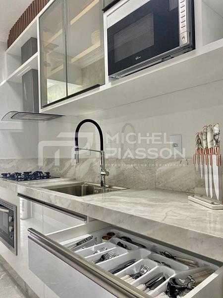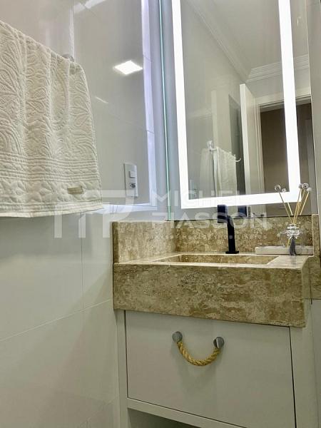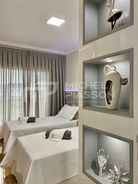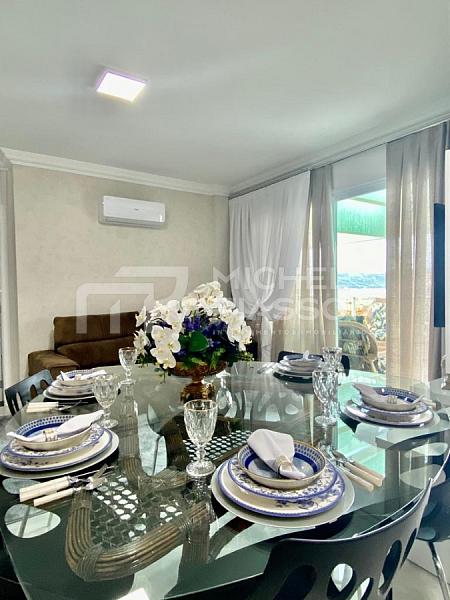 Cobertura duplex finamente mobiliada e com linda vista para o mar, possuindo 03 dormitórios (sendo 02 suítes), living para 02 ambientes (sala de estar e jantar), cozinha, área de serviço, amplo terraço com espaço gourmet e churrasqueira, banheiro social, 02 vagas de garagem privativa, com aproximadamente 148m² de área privativa.