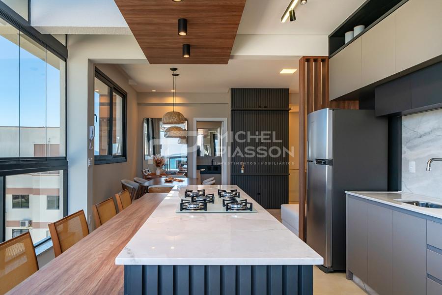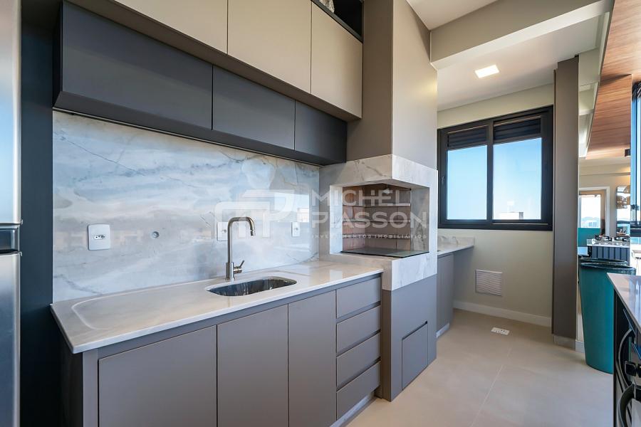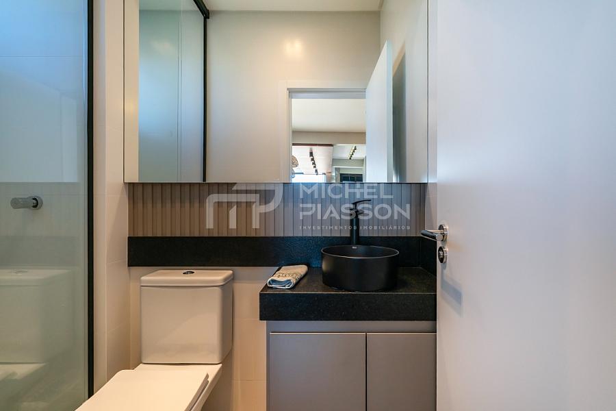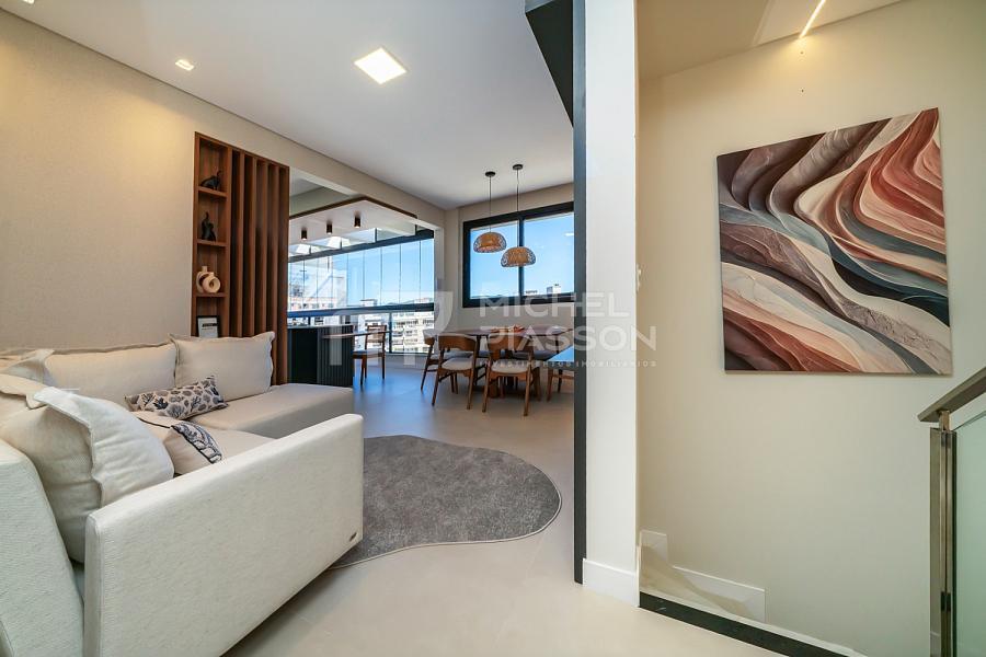 - Cobertura Duplex com 03 suítes, living com churrasqueira integrados, unidade com 113,5m² de área privativa, 02 vagas de garagem, pisos em porcelanato, dormitórios com vinilico, teto com rebaixo em gesso, medidores individuais, tubulação para água quente e para ar-condicionado split, elevador moderno e área de lazer no edifício.