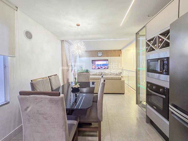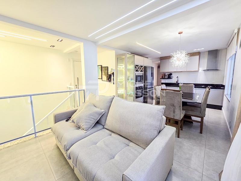 ⚜️ Cobertura duplex mobiliada, possuindo 03 suítes, living para 02 ambientes (sala de estar e jantar), cozinha, área de serviço, terraço com churrasqueira, lavabo, 02 vagas de garagem privativa, medindo aproximadamente 170m² de área privativa.