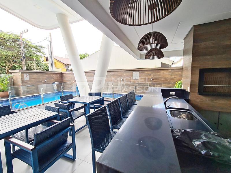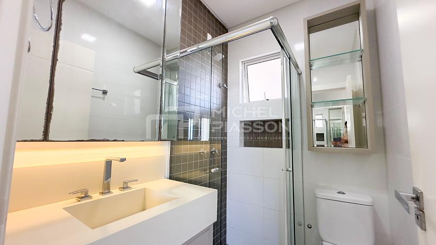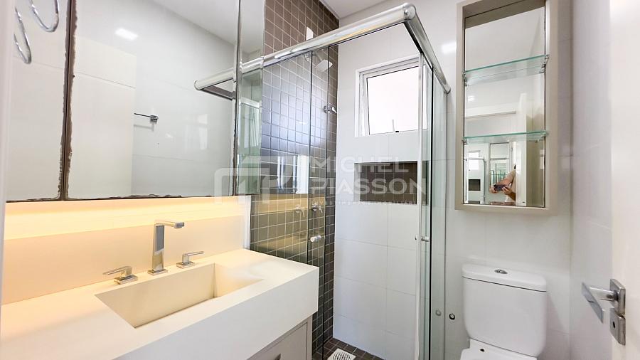 - Cobertura com 02 Suítes + Dormitório, lavabo, sala para 02 ambientes, sacada com churrasqueira a carvão, terraço coberto com espera para jacuzzi e vista para o mar da praia de Bombinhas, no andar superior sala e cozinha em ambientes integrados, lavado, lavanderia, no andar inferior living para área íntima, 03 suítes, suíte principal com sacada e vista do mar, 02 vagas individuais de garagem, pisos em porcelanato, teto com rebaixo em gesso, medidores individuais, particulares para água quente e para ar-condicionado split, elevador moderno.